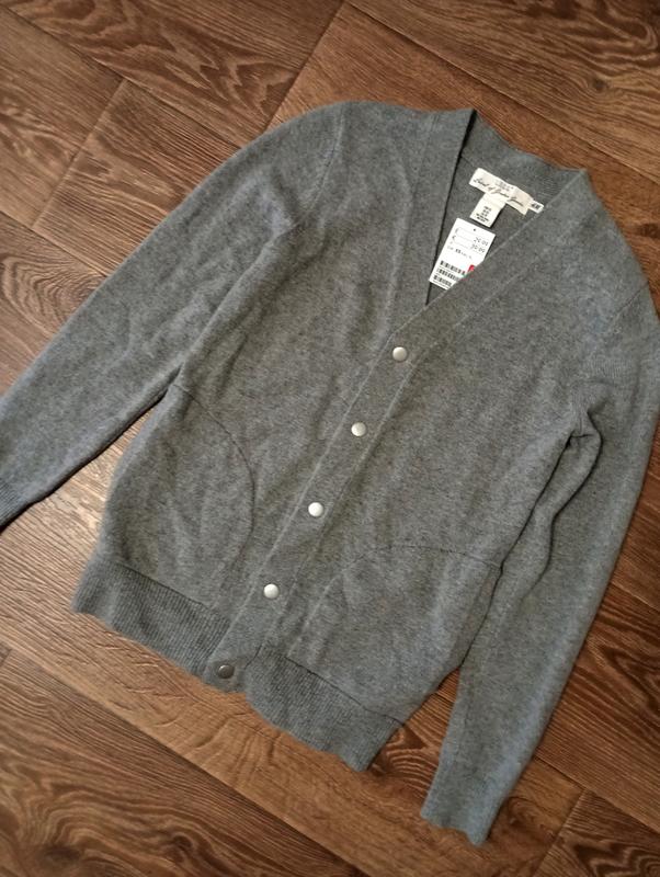 Новый, полу шерстяной кардиган, без каких-либо дефектов. Вязкая плотная, ткань не тонкая. Кардиган теплий, не колеться. Застегивается спереди на кнопки, по бокам внутренние карманы. Цвет серый. Длина 67-68 см, плечи 38 см( тянется), рукав 63-64 см, пог 44 см, пот и поб 43 см, ширина манжета внизу 40 см тянется 50 см.