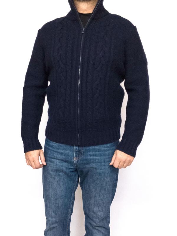 Роскошный экземпляр. Предлагаю стильный статусный мужской кардиган с высоким воротом Henri Lloyd, Британия. Очень мягкий, толстый, эластичный, теплющий, выполнен из высококачественной шерсти ягненка в темно синем цвете. Крой свободный, ворот высокий, застегивается на крупную молнию, по переду декорирован рельефным узором с объемными косами. Модель универсальная, с легкостью вписывается в любой гардероб. Состав: 100% шерсть ягненка Размер указан L Замеры тут: плечи 50 см по груди 62 см по талии 60 см по низу 54 см длина 72 см длина рукава 66 см пройма 25 см Вещь в безупречном состоянии. Обмена и возврата нет. Ф181025