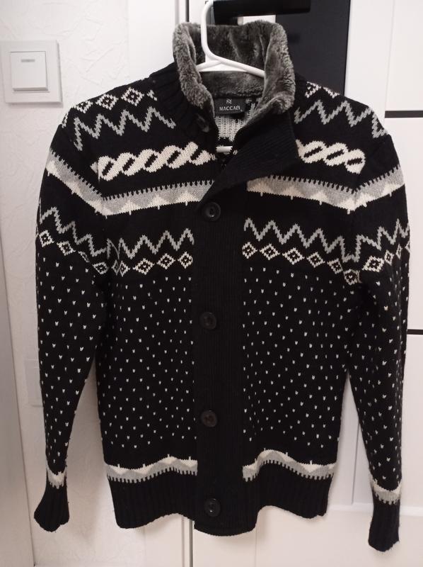 Очень теплый мужской кардиган.Размер Л.Комир меховой.Кофта имеет застежку + пуговицы.Состав :70%-шерсть,30%-акрил.Очень качественная,теплая и удобная . Замеры делают в свободном состоянии: ПОГ-50см ПОТ-47см Длина рукава-78см(от шеи), и 65см (от плеча) Длина кофты по спинке-68см, Ширина по плечам (сверху-46 см, на уровне лоракок-41см)