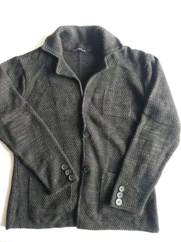 Кофта кардиган LC Waikiki knit wear винтаж black p.XL-L Кофта-кардиган выполнен в винтажном стиле плотной вязкой.. Плотная вязка орнаментом (knit wear). Классический воротник. Застежка на пуговицы. Два боковых кармана. Гудзики на рукавах. Нагрудний кармашек. Латки на ліктях. Приталенный. Стильный и качественный! Цвет – черный, черно серый меланж. Состав – акрил (пререкрасное качество) эластичная. Демисезон, зима Состояние – идеальный, без дефектов, несколько одеваний Размер бирки XL – реально на L-XL Замеры: Плечи - 50, Полуобъемы: Грудь - 58, талия - 52, Бедра - 56. Рукав - 62. Длина - 65. Доставка: 100% оплата, НП, Укрпошта Meest Rozetka *** Товар отправь по полной оплате или при предоплате 150 грн. Благодарю за понимание!