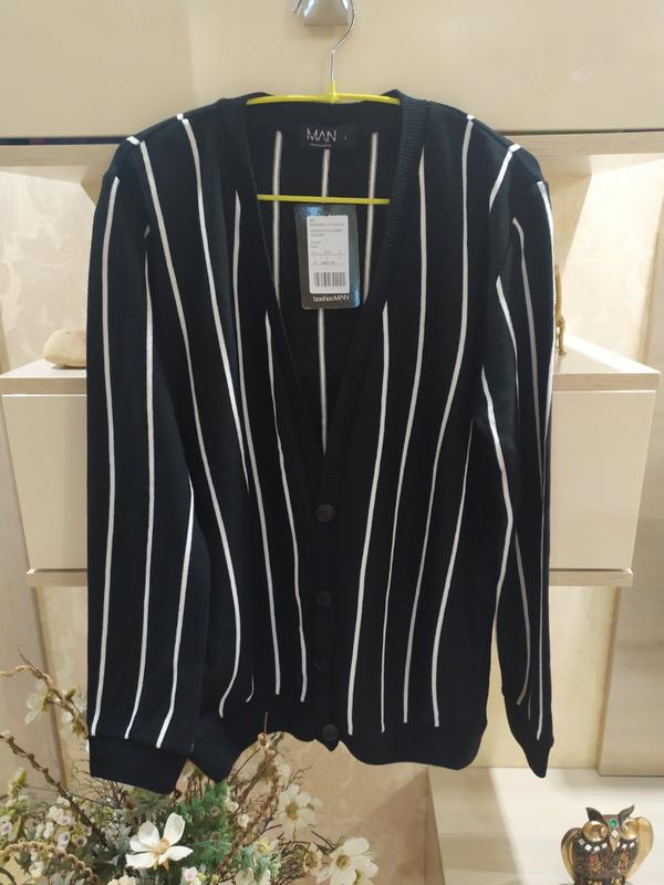 Новий чоловічий кардиган.Чорний у вертикальну білу смужку.
