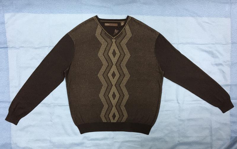 Оригінал! Пуловер чоловічий американського бренду Perry Ellis , виконані в коричневому кольорі з бежевим орнаментом , вироблено в Китаї, матеріал - 60% бавовна , 40% мікро- акрил ! М'який, приємний, тонкий светр , відмінної якості ! Розмірна сітка США , полномерный на високий зріст ! Розмір: US (XL ) : ПОГ - 64 см, довжина (перед) - 62 см, довжина (спина) - 71 см, рукав ( від шва плеча ) - 67 см , рукав ( від пройми ) - 50 см , плечи - 58!см . Виміри довжини дані від краю мису і зі спини - від краю коміру , рукава - від шва плеча та пройми плеча !