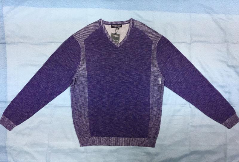 Пуловер чоловічий американського бренду Roundtree & Yorke , бузкового кольору , виробництво Китай , матеріал : 100% бавовна ! Бавовна тонка і м'яка ! Добре тягнеться і пружинить, хорошої якості ! Розмір: US ( L ): ПОГ - 57 см, довжина (перед) - 59 см, довжина (спина) - 72 см, рукав - 67 см, рукав ( від шва пройми ) - 51 , плечі - 51 см . Виміри довжин спереду і зі спини дані від краю горловини, рукава - від шва плеча, та пройми плеча , плечі - відстань між швами плеча!