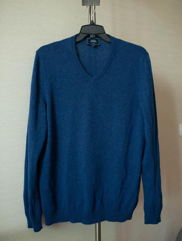 Пуловер с очень классным составом,90% шерсть мериноса, 10% кашемир, цвет- синий, что-то среднее- между двумя фотками, размер XL, но маломерит на Л НОП-46 НОГ- 56 длина -74 длина рукава -70