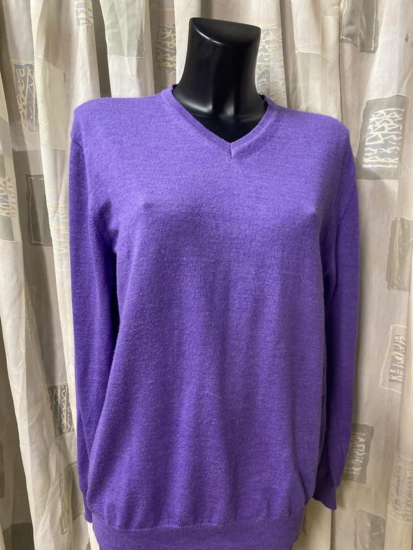 качественный теплый приятный на ощупь пуловер из тонкой шерсти. Цвет фиолетовый. Размер по набору-XL. Замеры: длина-68 см, ПОГ-52 см, ПОБ-40 см, рукав-63 см, ширина по плечам-45 см. Унисекс.