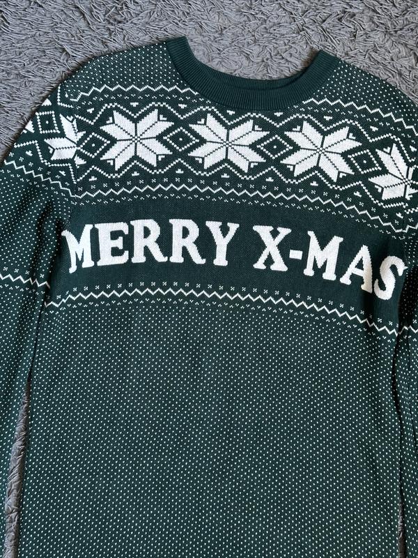 Мужской праздничный пуловер Merry Christmas, темно-зеленого цвета, размер М.