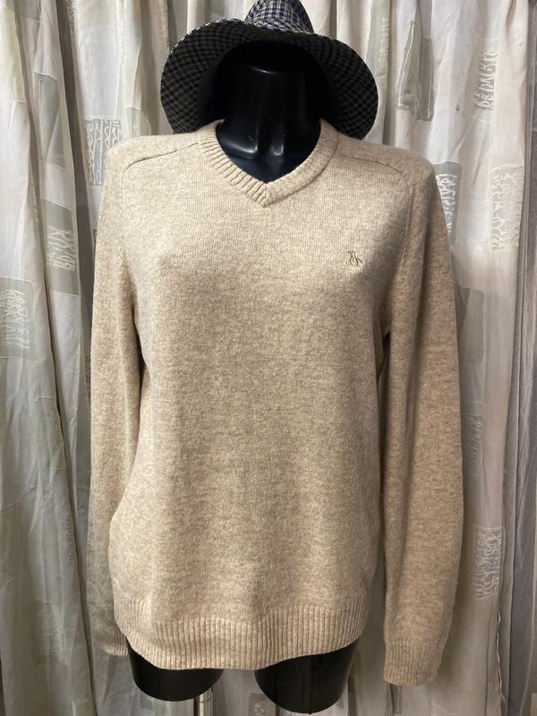 Якісний стильний теплий пуловер від Penguin. Колір бежевий. М’який і зручний. Позмір по бірці-L. Заміри:довжина-67 см, ПОГ-49 см, ПОБ-44 см, рукав від ворота-81 см. Стан відмінний, лише незначна плямка(див. Останнє фото). Унісексі.