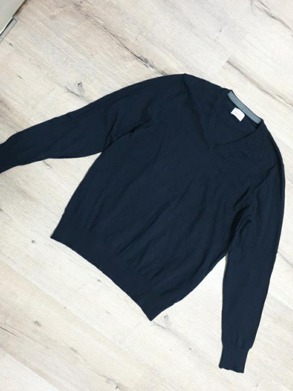 Базовый темно синий мужской пуловер свитер, хлопок 80%, полиамид 20%, ПОГ 53, длина 67, рукав 69 см