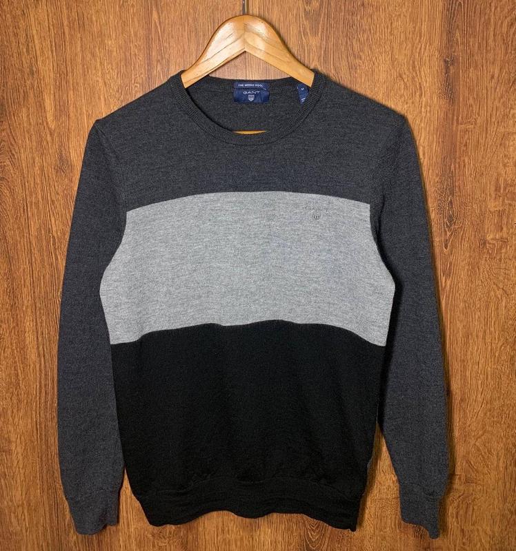 Пуловер GANT. Розмір по бирці М. Фактичний розмір S. Стан 5/5. Повний ідеал. Жодних нюансів. Склад: 100% Вовна. Колір: сіра з чорною смужки. Заміри: Плечі 42 см; Пахви 50 см; Рукав 62 см; Довжина 67 см