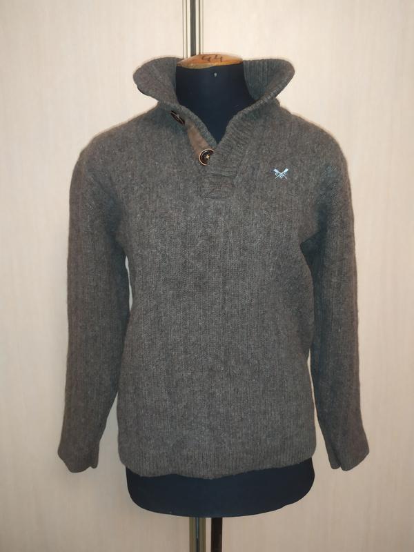 свитер мягкий шерстяной очень теплый. застегивается сверху на 3 пуговки. идеальное состояние. длина 63см длина рукава 55см пог 55см полуширина по низу 47см замеры сделаны в спокойном состоянии на столе.