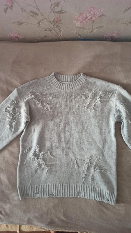 Модный пуловер с потертостями,серого цвета,р. Л Новый