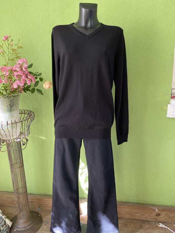 Качественный мужской пуловер черного цвета из тонкой шерсти. Размер по набору-L. Замеры:длина-68 см, ПОГ-50 см, ПОБ-39 см, рукав-66 см. Унисекси! Шерсть не создает катышки.