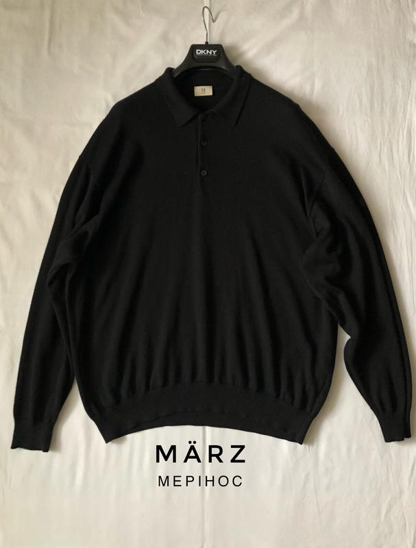 Поло MÄRZ Стан чудовий. Вовна меріноса 100% Чорне, тонке. Преміальний німецький бренд , спеціалізується на трикотажних виробах. РОЗМІР: вказано 60 европейський. ВИМІРИ: НО грудей -69 см НО талії -66 см НО по низ ( резинка)-51,5 см Довжина -76 см Плечі -61 см Довжина рукава від плеча-64 см Від комірця-88 см НО рукава біля пройми-26,5 см Загальний стан ідеальний, але є нюанс.