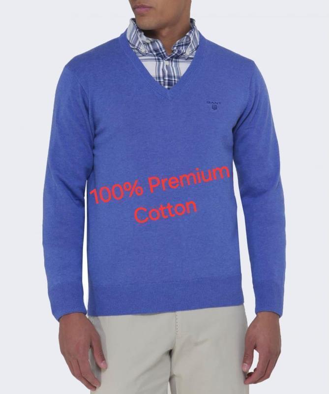 Шикарный мужской пуловер синего цвета gant premium cotton, 💯 оригинал