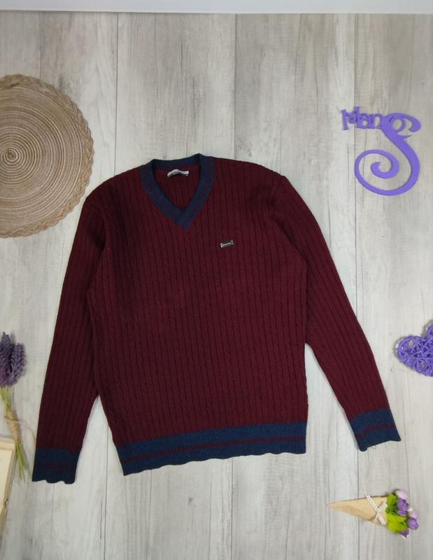 Вязаный мужской пуловер SV Moda бордового цвета. Эластичный, теплый. V-образный вырез горловины. Состояние б/в, в отличном состоянии Производитель SV Moda Размер XL (50) Цвет бордовый Состав шерсть, полиамид, полиэстер, эластан Замеры: полуобхват груди 55 см, полуобхват талии 49 см, ширина по плечам 45 см, длина рукава 65 см, длина 67 см