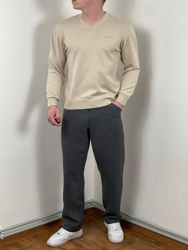 Бежевий легкий базовий светр Pierre Cardin з V- подібним вирізом та вишитим лого Розмір: л Стан: Ідеал Оплата: Безпечний платіж, оплата на карту, оплата при отриманні НП Для замовлення або будь яких питань звертайтесь в приват