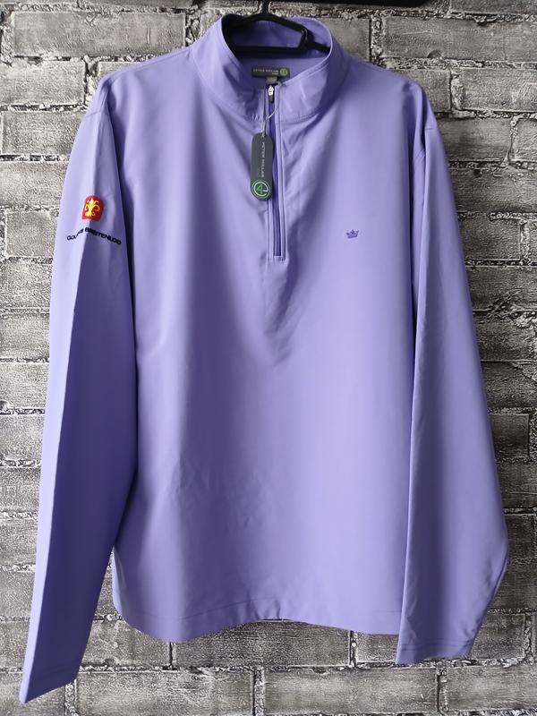 нова річ із биркою склад: 89% поліестер, 11% спандекс. тканина м'яка, шовковиста, трохи тягнеться — на 11% колір насичений лавандовий, як на третій фото — червоним вказано....камера не вловлює бузковий підтон. довжина — 71.5% НОГ — 65 см піт — 62 см, низ — 62 см комір — 52 см/верхній край — 50 см модель E4 wind — вітростійка