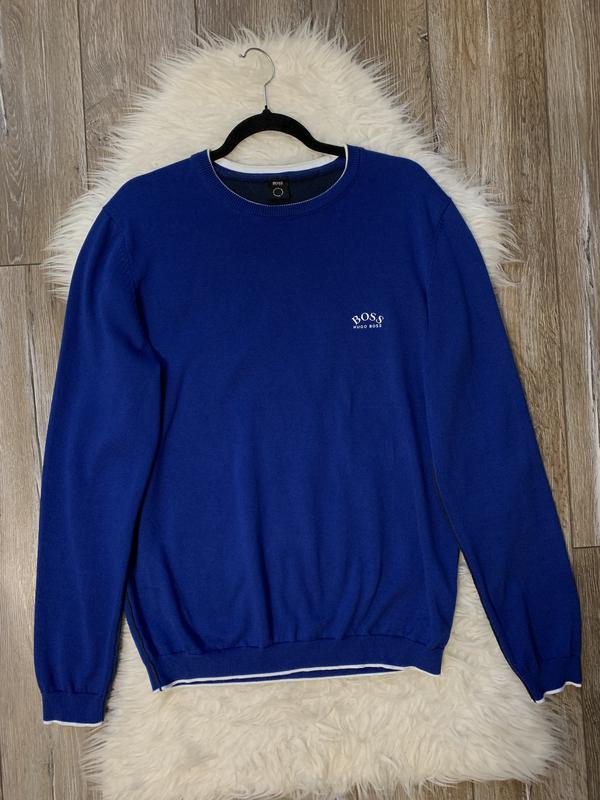 Синій пуловер Hugo Boss, розмір L. Довжина 70,5см Рукав 68см Плечі 45,5см Пог 55см Низ 43см Без слідів носіння!