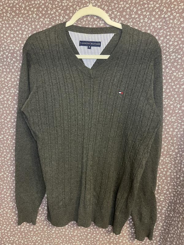Пуловер чоловічий Tommy Hilfiger сірий оригінальний Розмір - М Заміри: Ширина - 45см(розтягується до 70см) Довжина - 68см Ширина рукава(вихід) - 8см Довжина рукава - 60см Мʼякий светр, до того ж добре тягнеться. Дефектів не має! Пишіть в особисті