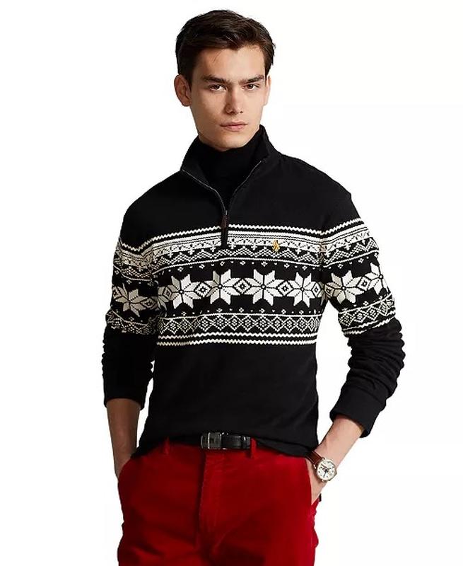 Елегантний светр від Ralph Lauren зі стильним зимовим візерунком і замком-блискавкою. Виготовлений з чорної бавовни. Стан: ідеальний. Ціна нового 250$ ( близько 10 600 гривень). Розмір L Плечі 49 Груди 61 Довжина 73 Рукав 67