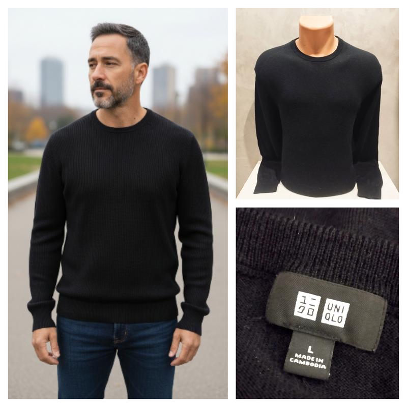 Uniqlo, шерстяной пуловер черного цвета, размер L состояние новой вещи внутренняя бирка отсутствует, но по опыту- 100% шерсть длина 70 плечи 47 пог 56 рукав 68
