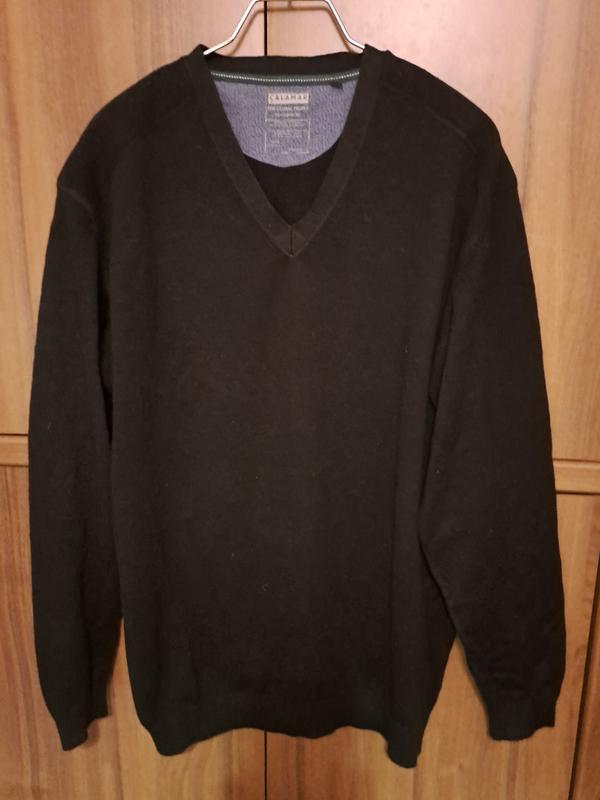 Мужской пуловер черного цвета. Базовая модель с V-образным вырезом горловины и длинными рукавами. Размер от производителя- 3XL. Пог.-длина-, длина рукава-. 100% качественный плотный коттон.