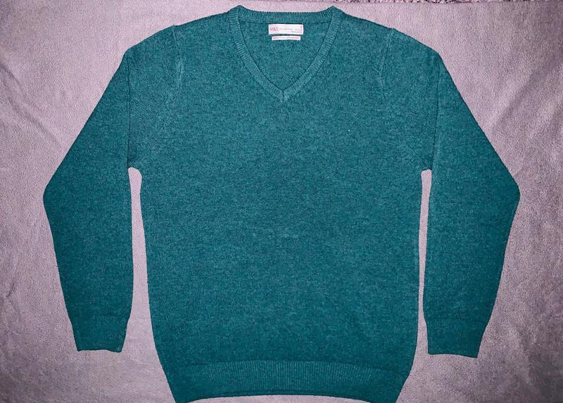 Продаю шикарный теплый пуловер, 100% шерсть. Мужская размерная сетка, размер S, подойдет на удлиненный женский размер М. Британский бренд Marks & Spencer. Цвет насыщенный темно-зелёный, как хвоя, на фото немного искажен, там где бирки наиболее точно предан цвет. Главное достоинство, конечно состав - натуральная шерсть. Мягкий трикотаж, вязка средняя, легкий. Вырез горловины V-образный. Состояние идеальное, катышек, дыр, затяжек, пятен и пр. - НЕТ. Размер производителя: S , ориентируйтесь пожалуйста на замеры. Длина по спинке: 68 см. Длина плечевого шва: 9 см. Длина рукава: 63 см. ПОГ: 49 см. Полуобъем по низу: 45 см. по резинке(тянется до 49 см.) С удовольствием отвечу на все Ваши вопросы. Смотрите другие мои объявления.