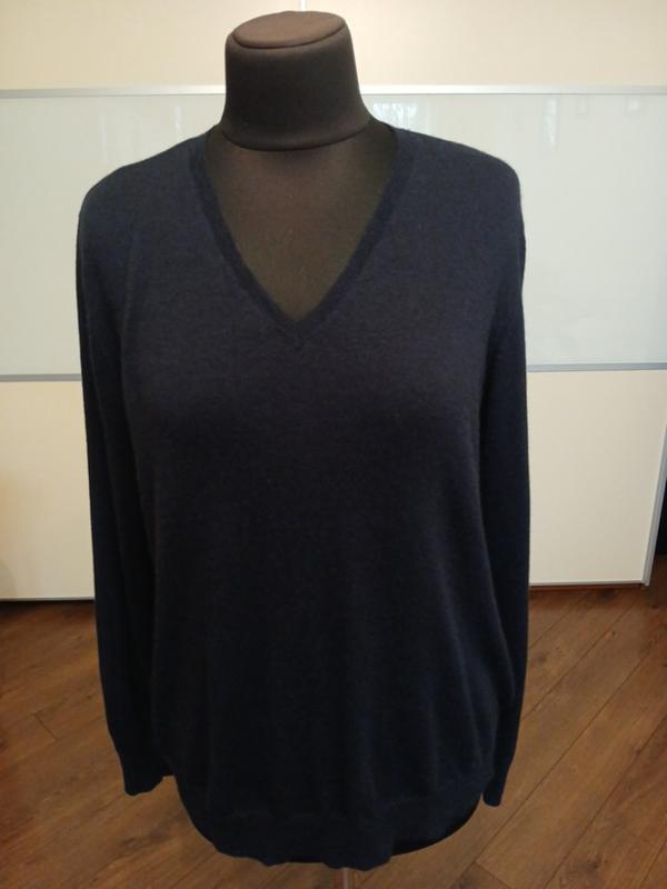 Базовый пуловер темно синего цвета , тонкий и нежный . Длина 68 см , пог 61 см , плечи 43 см , рукав 70 см .
