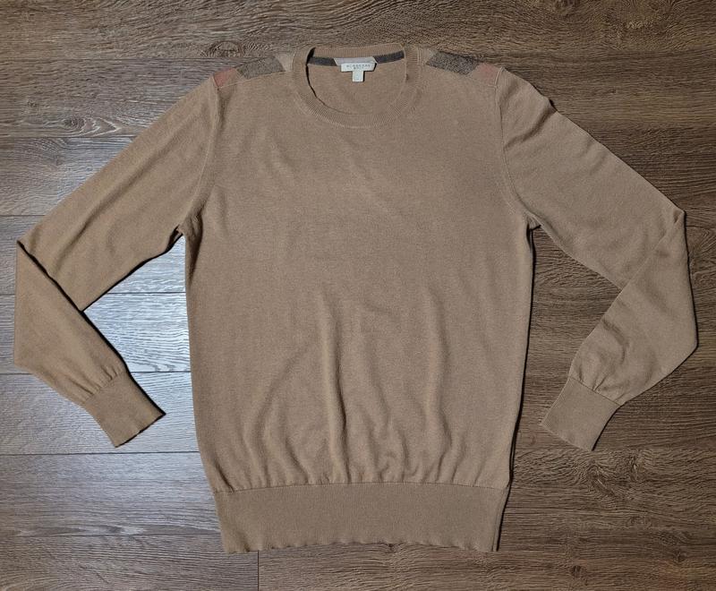 Свитер английского люкс бренда Burberry, цвет песочный, размер L(может быть на М), состав:50% кашемир,50 коттон,по плотности тонкий, производство Китай, замеры (п/объем 56, плечи 44, длина рукава по внешнему шву 74, по внутреннему 53, длина изделия 70). Состояние идеальное.