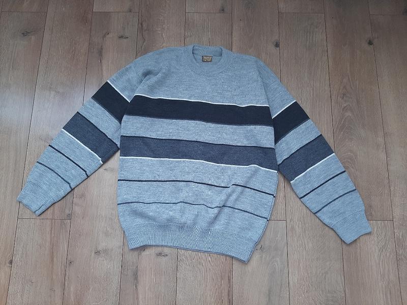 Дуже гарний чоловічий светр у смужку. На бірці розмір М. Заміри: Довжина-67 плечі приспущені-53 рукав від плечового шва- 54 см. Стан відмінний, без дефектів, одягався декілька раз на вихід. М*який і ніжний.
