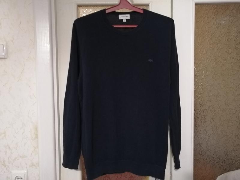 Оригiнальний светр Lacoste темно синього кольору. Стан супер. Без дефектiв. Колiр насичений. Стан нового. Краще пiдiйде на осiнь або весну По бiрцi розмiр XL Плечi 48 см Подмишки 60 см Рукав вiд плеча 68 см Довжина по спинi 73 см Цiна в магазинi новоi 4000 грн (100€)