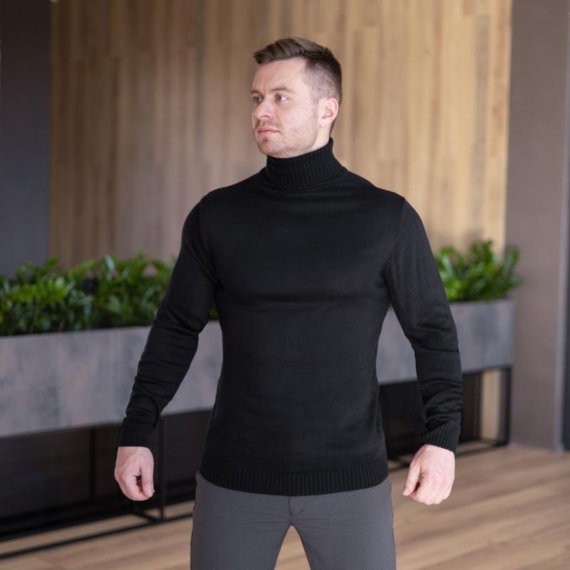 Светр під горло Pobedov "Axelrod" (Фсв00001) чорний ▫️Відмінний чоловічий светр-гольф. ▫️ Матеріал: турецька пряжа 70% шерсть, 30% акрил ▫️Приталена модель. ▫️Має подвійну горловину, фасон - з відворотом, під горло. ▫️Дуже зручний, приємний до тіла. ▫️Зносостійкий і практичний - не кошлатиться при перших носіннях. ▫️Витриманий стиль, класичний крій і лаконічний дизайн светра не залишать ваш образ непоміченим, а приємний до тіла склад пряжі зігріє прохолодними вечорами. ▫️Розміри: S M L XL ХХL