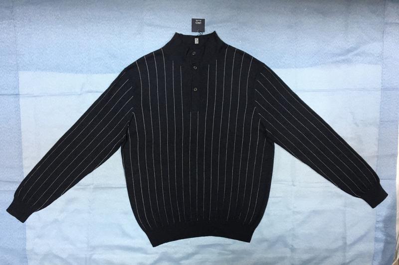 Светер чоловічий американського бренду Links , виконаний в темно-синьому кольорі в білу смужку , виробництво Кітай , матеріал : 85% бавовна , 15% кашемір ! Комір високий на 3-х гудзиках ! В запасі є ґудзик ! На високий зріст ! Розмір: US ( XL ): ПОГ - 63 см, довжина (перед) - 74 см, довжина (спина) - 74 см, рукав - 71 см, рукав ( від пройми ) - 54 см, плечі - 55 см . Виміри довжин спереду дані від краю горловини і зі спини - шва коміру , рукава - від шва плеча та від шва пройми , плечі - відстань між швами плеча !