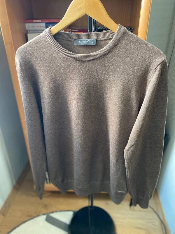 Теплий чоловічий светр турецького бренду Konko. Одягався 2 рази. Розмір - М. Довжина рукава 65 см, напівобхват грудей 47 см, довжина светра 67 см. Склад (етикетка відрізана): 50% бавовна, 50% акрил