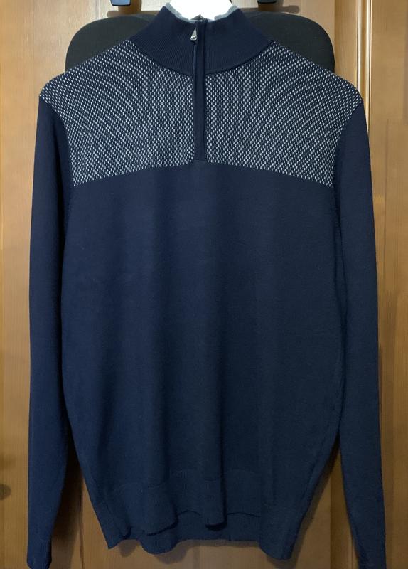 Дуже стильний светр, можно носити самостійно , або під піджак с джинсами. Має подвійний ворот та рукав, на фото є. В ідеальному стані. Склад - віскоза 75% поліамід - 25%. Розмір M-L.. Гарно тягнеться. Розміри: Довжина- 67 см Плечі 43 см Рукав - 69 см ПОГ - 52 см
