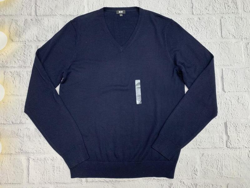 Не товстий але тепленький бо 100% вовна від якісного бренду. Довжина 68 см, пог 51 см.Колір темно-синій