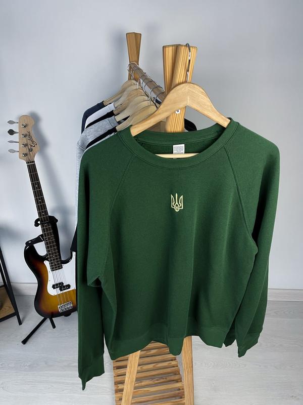 Реглан утепленный унисекс зеленого цвета с вышитым трезубцем