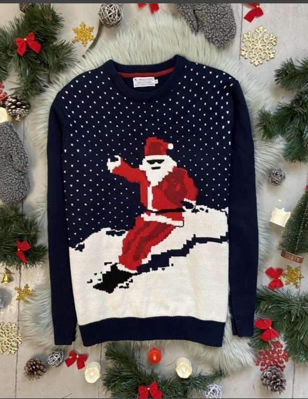 Новорічний різдвяний светр Санта-Клаус на сноуборді. Середній щільності, приємний, не колеться. Дефекти: є небагато катишок. Але це легко можна прибрати. Виміри: плечі 50см.; рукав 67см.; висота пройми 28см.; ширина рукава 21см.; об.грудей 64см.; по низу виробу 50см.; довжина по спині 74см.. Відсилаю після 100% оплати на карту, відправка Новою або Укр.поштою.За більш детальною інформацією звертайтесь.Дивіться мої інші оголошення.