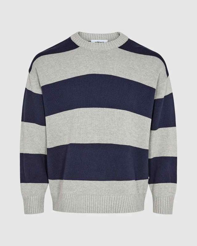 хлопковый свитер круглый вырез горловины в полоску цвет: синий / светло-серый