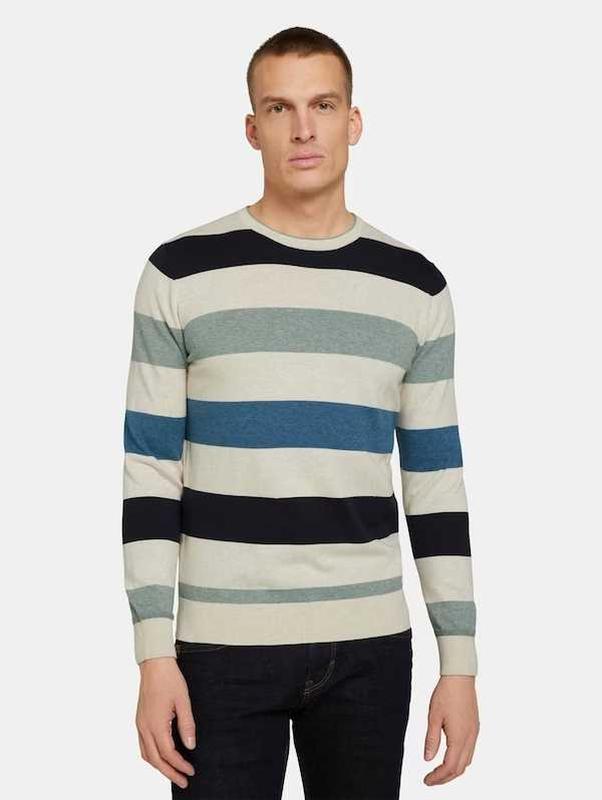 тонкий мужской свитер принт в широкую полоску круглый вырез горловины длинный рукав цвет: мультицвет