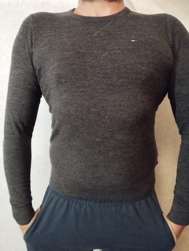 Базовый мужской свитер фирмы Tommy Hilfiger, приятного серого цвета, размера М, ПОГ-52см, длина -65см, ширина плеч-40см, длина рукава -67 стан новой вещи но без боковой стороны