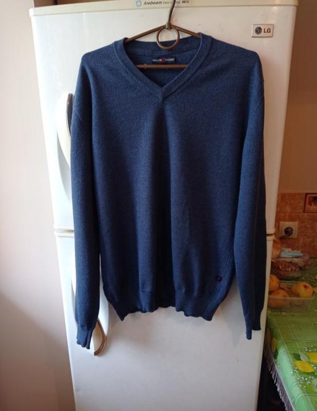 Классный теплый шерстяной свитер от бренда Tailor Store с V-образным вырезом синее-сизиго цвета (цвет «сливы»), размер будет на «М», может подойти и на «S» (см. ниже приведены замеры). Свитер в отличном состоянии, без дефектов и без следов ношения (см. фото). Замеры: 1.Ширина в плечах – 46 см. 2. Ширина по спине (от подмышки до подмышки)- 51 см. 3. Длина рукава по внешнему шву - 65 см. 4. Довжина рукава по внутр.шву - 48 см. 5.Загальна довжина кофти - 66 см.