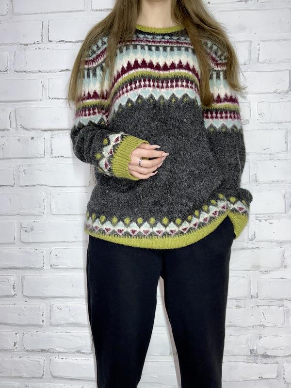 Свитер ASOS, состояние очень хорошее, размер указан L мужской, состав: 40% акрил, 32% нейлон, 14% махра, 13% шерсть, 1% эластан. Замеры: длина 75, плечи припущенные 52, длина рукава 70, ПОГ 57