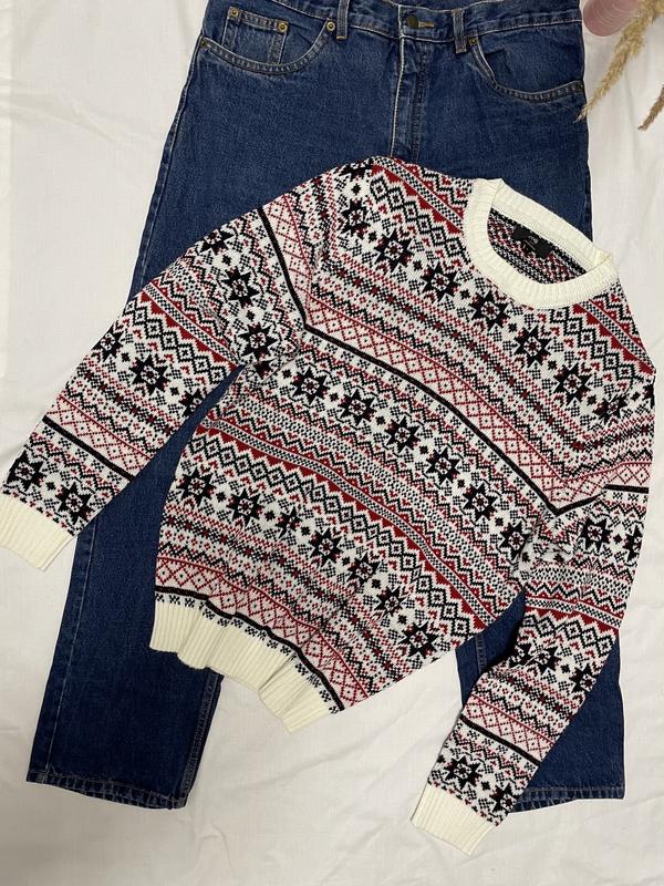 Мужской свитер с новогодним принтом. Размер L. В идеальном состоянии
