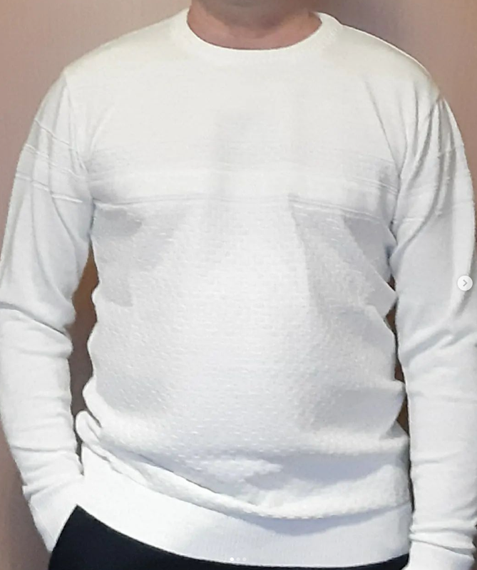 Модель 4002. Бренд FMT. Свитер мужской, состав 70% wool, 30%асrylic.Цвет молоко, меланж.Модель отлично садится на фигуру. Свитер мягкий, теплый, тонкий, нарядный. Выглядит стильно, красиво. Турция. L пог50см, дл.рукава 61см, дл. изделия 69см XL пог 54см, дл.рукава 64см, дл.изделия 71см XXL пог 55см, дл.рукава 64см, дл.изделия 71см. Цена 875грн.