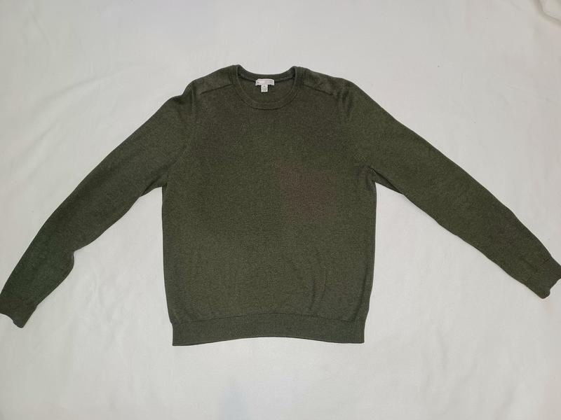 В идеальном состоянии. 95% коттон, 5% кашемир. Цвет темно зеленый, блище к хаки. Длина - 60см. ПОГ- 51см. рукав от шеи- 78см