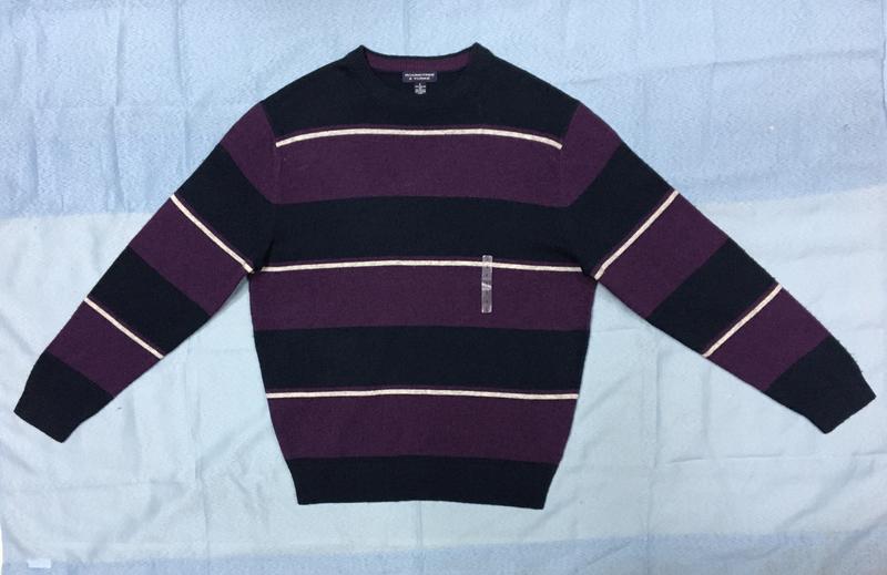 Джемпер мужской американского бренда Roundtree & Yorke, в сине-фиолетовом цвете в белую полоску, производство Китай, материал (мягкий, толстый, стрейчевый) - 40% хлопок, 35% полиэстер, 25% шерсть! Очень теплый! Размер: L : ПОГ - 57 см, длина ( перед ) - 65 см, длина ( спина) - 71 см, рукав - 65 см, плечи - 51 см. Размеры длины данные от края горловины, рукава - от шва плеча, плечи - расстояние между швами плеча.