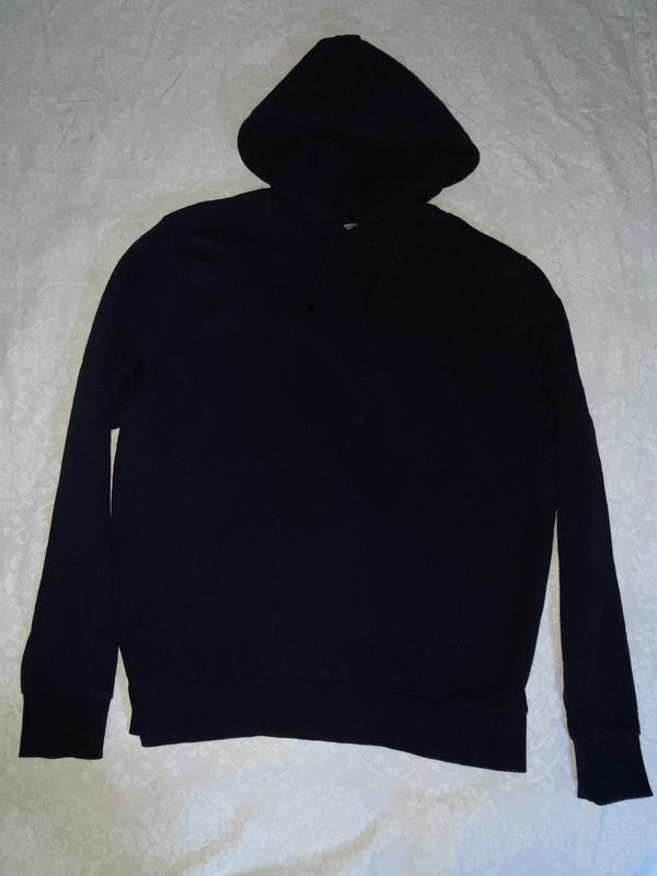 Мужская кофта-кенгурушка с длинными рукавами. Черного цвета с капюшоном, который затягивается на шнурок. Впереди большой сплошной карман. Состояние почти нового. Плечи - 50см, грудь- 58см, талия - 57см, низ - 48см, длинна по спине - 66см, длинна рукава - 67см Пишите в личные сообщения, отвечу на все вопросы, по желанию дополню фото