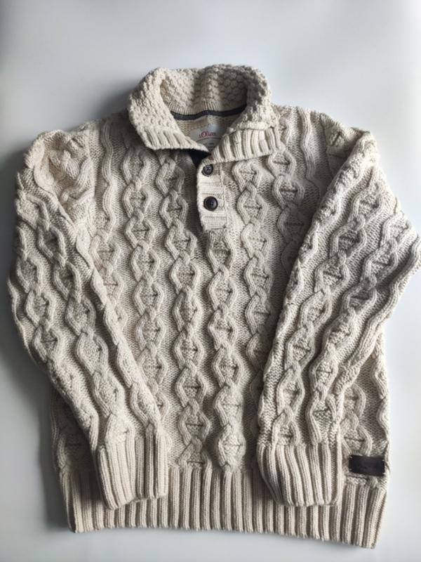 Свитер S`Oliver knit wear винтаж р.l-m off white Свитер шикарного качества от известного бренда. Свитер выполнен в винтажном стиле узорной вязкой. Спинка - глдкая вязка Высокая горловина - воротник с планкой и застежкой на роговые пуговицы манжеты – низ и рукава. Лого бренда снизу слева спереди. Запасная пуговица. Очень плотный и фактурный . Плотная вязка орнаментом (knit wear) Цвет – off white - грязно белый, молочный, светло кремовый. Состав – 50% шерсть, 50% полиамид . Демисезон, зима Состояние - идеальное. Размер бирки L Замеры: Плечи - 44, Полуобьемы: Грудь - 52, талия - 50, Бедра - 52. Рукав - 68 . Длина - 66. Доставка: 100% оплата, НП, Укрпочта *** Товар отправляю по полной оплате или за предоплату в 150 грн. Благодарю за понимание!