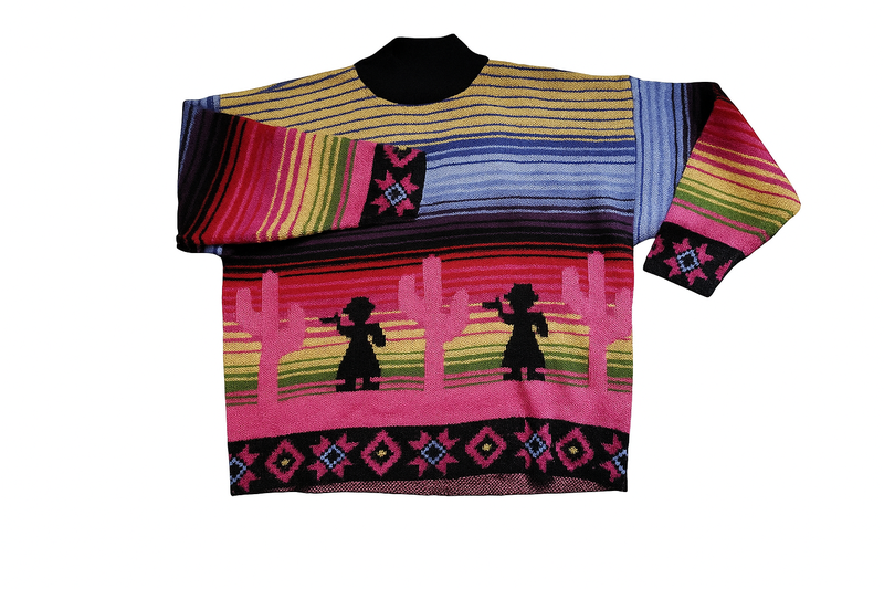 Винтажный свитер ретро вестерн с ковбоями кактус вестерн винтаж y2k хиппи бохо гранж абстр...